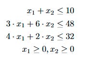 What is ‘linear programming?’ The idea is simple: to solve a problem, find the optimal values of variables given certain constraints. Kantorovich found that if we can describe the problem in terms of a shape, we can find the optimal value of variables by finding the very edge (corner point) of the shape furthest towards what you want to maximize. With this method, we can solve linear problems (in which two things always remain in a constant proportion) by merely solving for the corner point rather than trying to check every combination. Let’s give a classical example, using Kantorovich’s ‘valuations’: